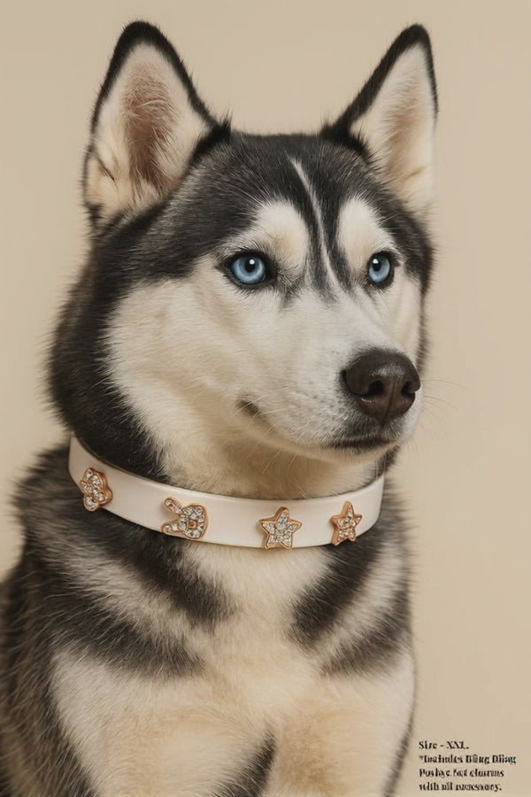 Discover our collection of luxury dog collars. designed to add a touch of elegance to your furry friend's look.