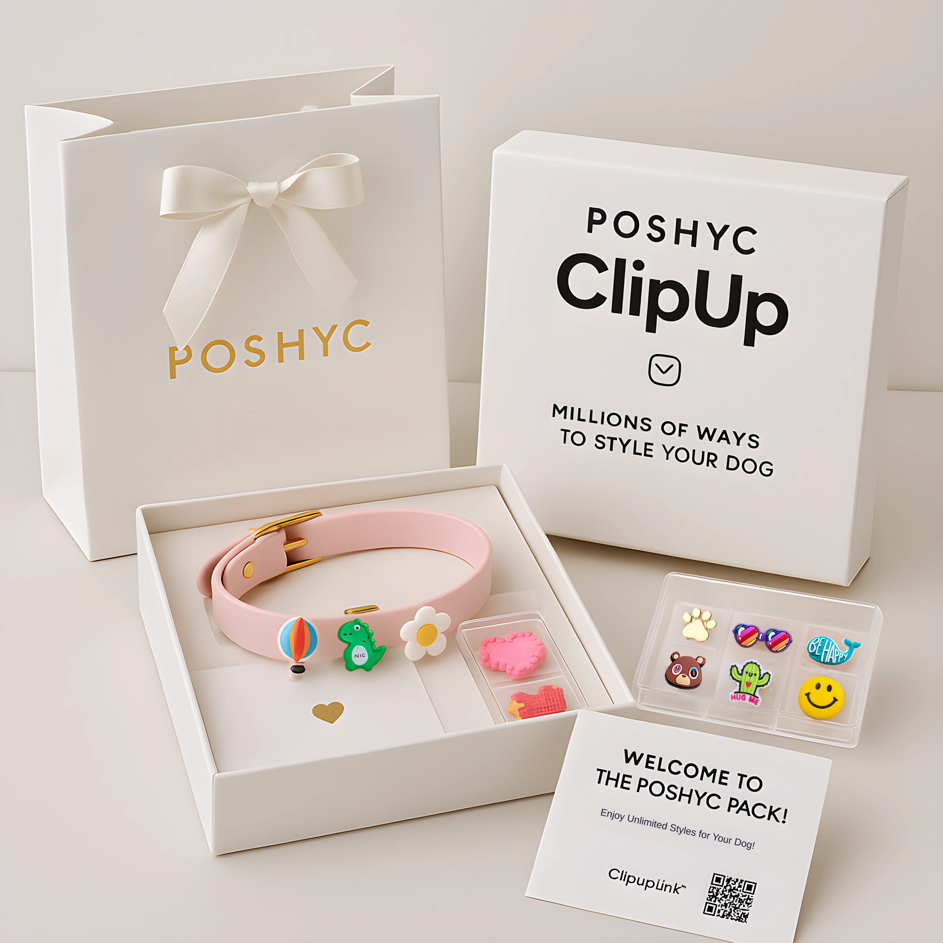 POSHYC is a luxury pet accessory brand offering patented, customizable dog collars, harnesses, and leashes with our exclusive ClipUp technology. Each product features holes for interchangeable charms—similar to luxury fashion accessories—allowing dog owners to create millions of unique combinations.